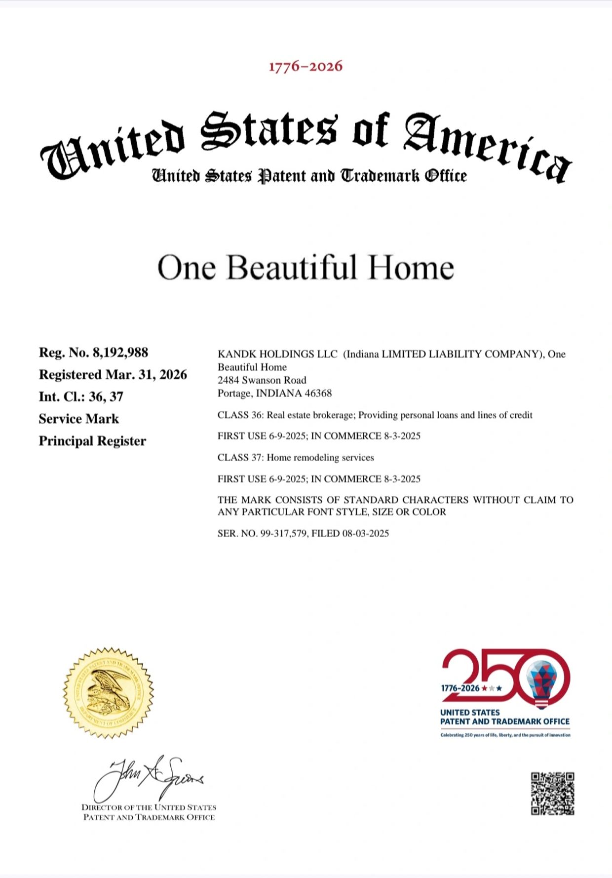 One Beautiful Home® is now federally registered. Helping homeowners buy, remodel, repair, and sell with one connected strategy. One Beautiful Home® is a federally registered trademark of KANDK HOLDINGS LLC. Our goal is to be your Home Ownership Expert for Life — one point of contact for buying, renovating, financing, and selling every home you own. We proudly serve Northwest Indiana, South Chicagoland, and Michiana. Powered By: America’s Construction Experts (ACE) — Licensed • Insured & Bonded America’s Real Estate Experts (ARE) — Licensed Indiana Brokerage #RC52400155 • Member NAR & Fair Housing Compliant America’s Private Investments (API) — Private Lending & Remodel Financing Solutions • NMLS Exempt Private Lender. Each company operates independently under its own license and insurance while collaborating through the ONE BEAUTIFUL HOME® brand to provide a seamless, start-to-finish homeownership experience. © 2025 One Beautiful Home™ | All Rights Reserved | Equal Housing Opportunity